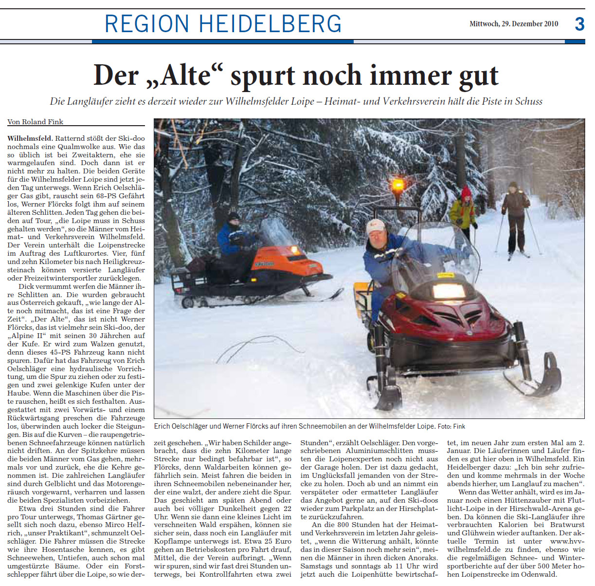 Bericht aus der Rhein-Neckar-Zeitung vom 29.Dezember 2010